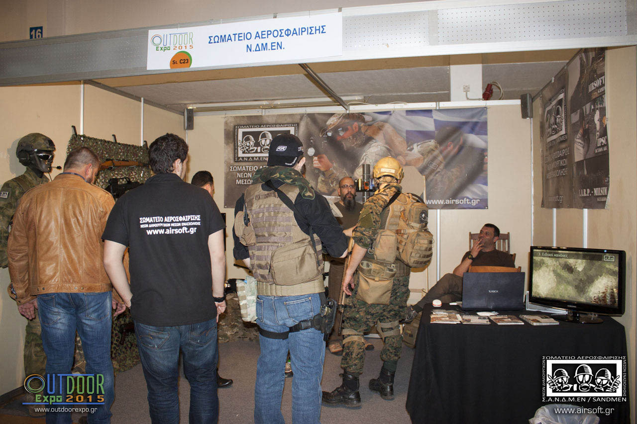 Το Σωματείο Αεροσφαίρισης Ν.Δ.Μ.ΕΝ. παρουσίασε στο περίπτερό C23, για πρώτη φορά στην Αθήνα, στο ευρύ κοινό την δραστηριότητα της αεροσφαίρισης και οι επισκέπτες είχαν την δυνατότητα να δουν από κοντά αλλά και να περιεργαστούν τα αεροβόλα τύπου airsoft που χρησιμοποιούνται στο χόμπι μας. Στο περίπτερο υπήρχε ποικιλία αεροβόλων airsoft από την περίοδο του Β.Π.Π. (Mauser Kar98, Mp40, Luger) μέχρι τελευταία μοντέλα πιστά αντίγραφα πραγματικών όπλων που χρησιμοποιούνται στις σύγχρονες μάχες.